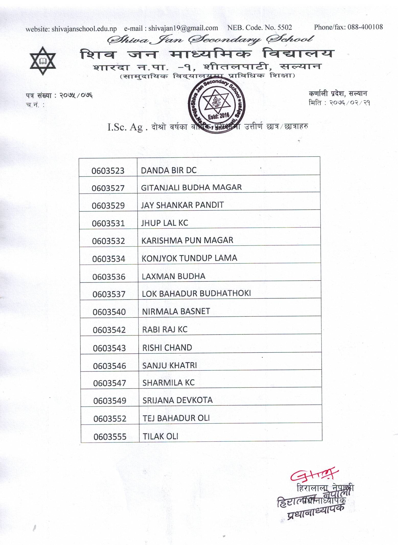 २०७५ काे I.Sc.Ag. दाेश्राे वर्षका वार्षिक परीक्षाामा उत्तीर्ण छात्र।छात्राहरु