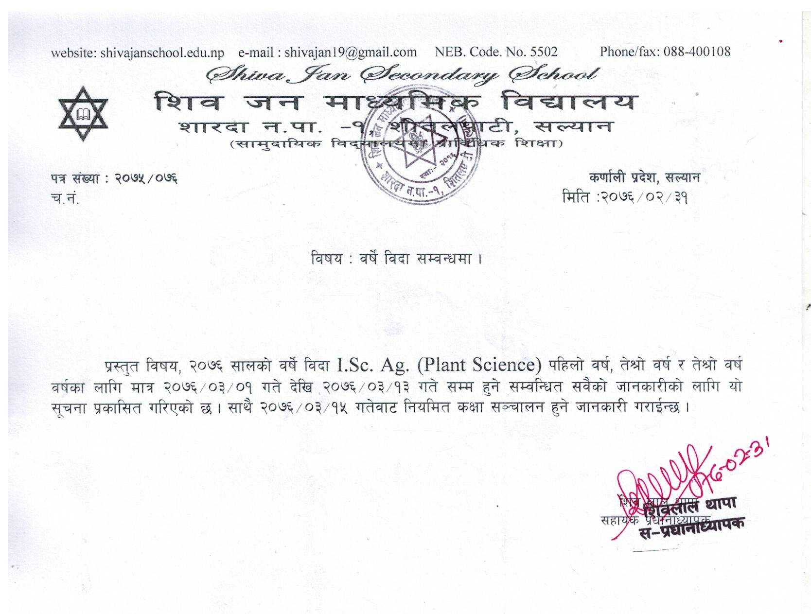 I.Sc. Ag. (Plant Science) का लागि मात्र २०७६ सालकाे वर्षे विदा सम्मन्धी सूचना ।