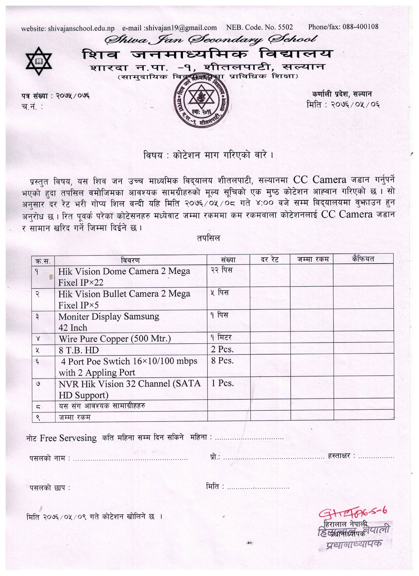 CC Camera जडान सम्वन्धि काेटेशन माग गरीएकाे सूचना ।।