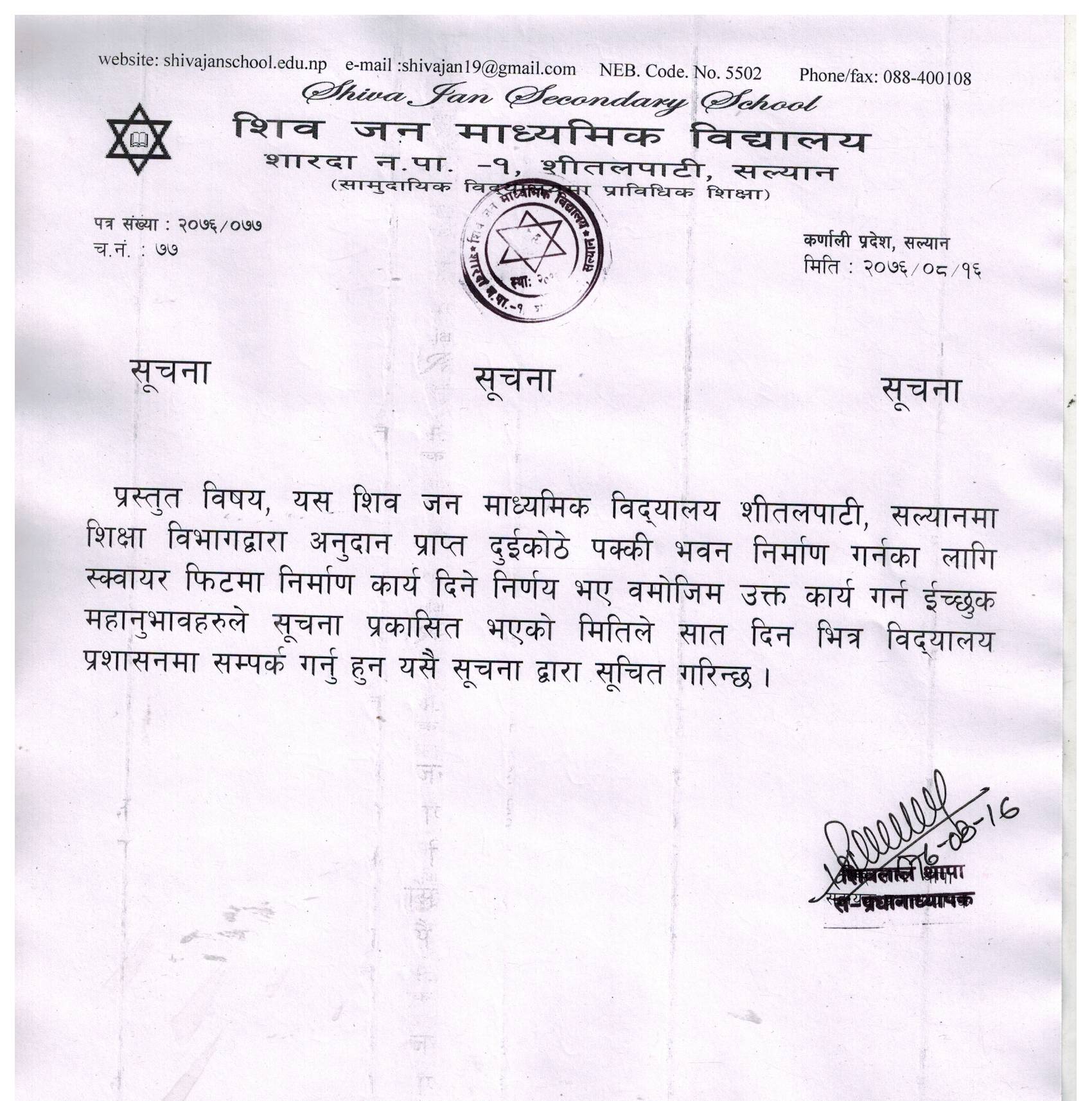 भवन निर्माण कार्य सम्वन्धि सूचना ।।